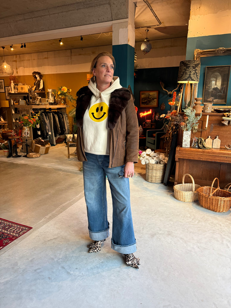 Prachtige suède leren jas van ARMA Collection in een warme cognackleur, afgewerkt met een royale echte bontkraag. Het zachte, hoogwaardige suède in combinatie met de diepe bruine bonttinten geeft deze jas een luxe, tijdloze uitstraling.