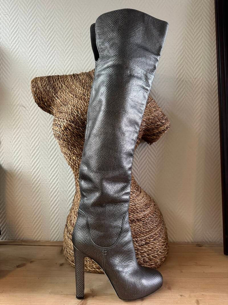 Mooie zilver / grijze over knee laars van Sergio Rossi Maat 37,5 Nieuwprijs +/- € 1500,-