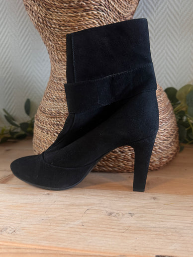 Stijlvolle zwarte halfhoge laarzen van Unisa.Gemaakt van soepel Suede met een elegante schachtlengte tot halverwege de kuit. De bovenzijde is gebreid en kan omgeslagen of omhoog gedragen worden.Comfortabele pasvorm met stevige zool — ideaal voor dagelijks gebruik of een avond uit.Combineer ze moeiteloos met een jurk, jeans of lange rok.